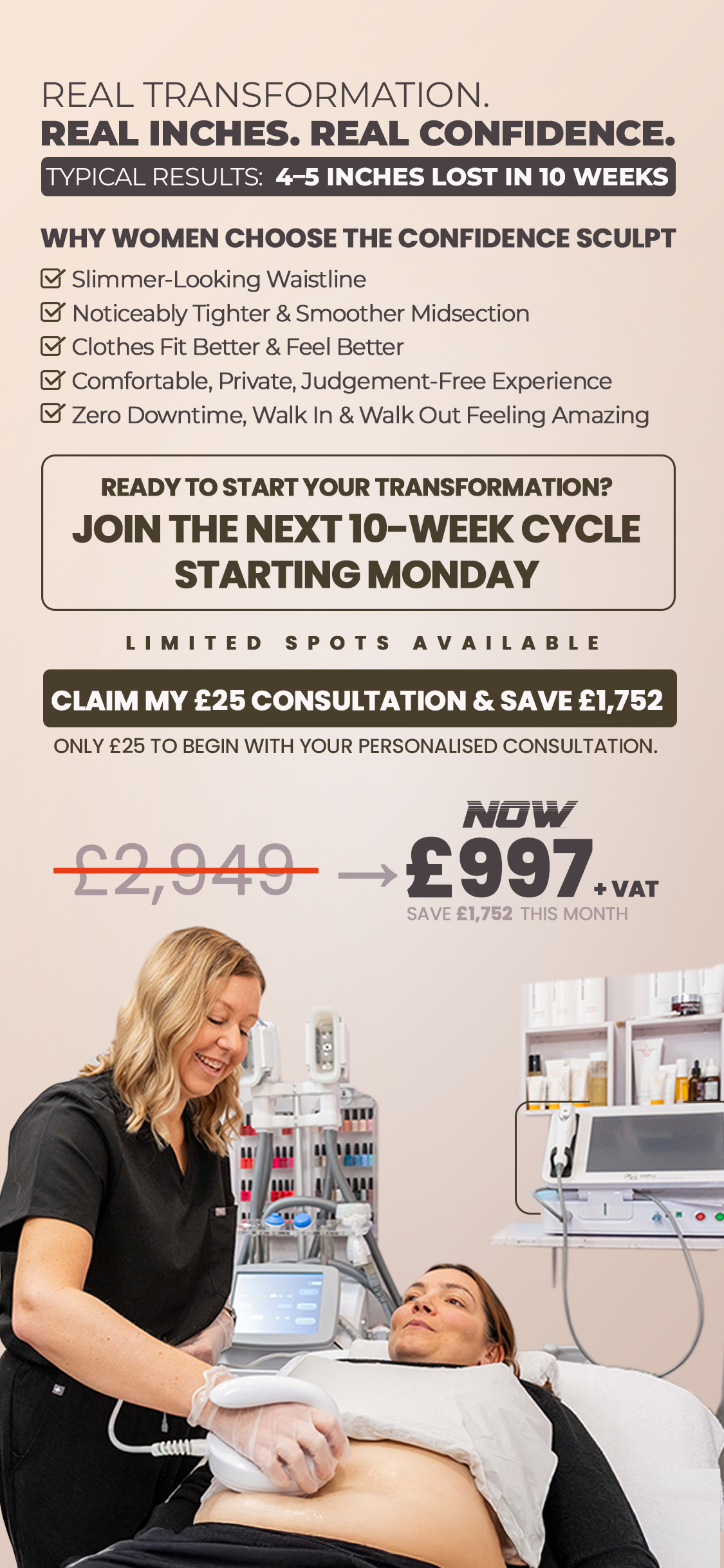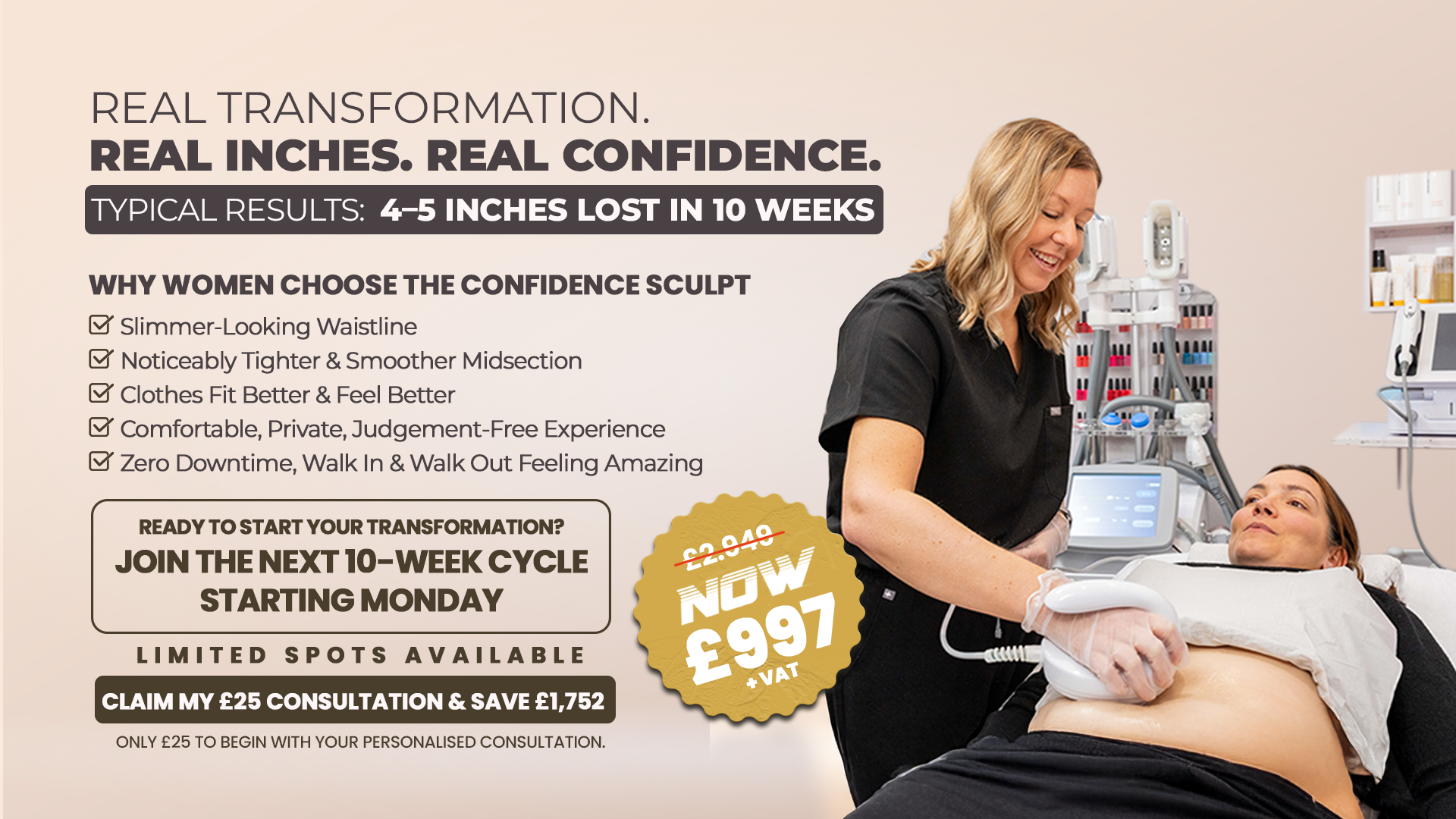 Join our Inch Loss Transformation Program and save over £1,700. Non-surgery. No downtime. Real results.